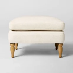 Holley Mongolian Fur/Wood Ottoman Cream – Threshold™: Padded, No Assembly, Plywood Frame