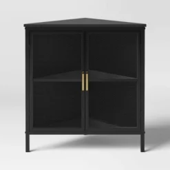 Mesh Corner Cabinet Black – Threshold™: Sleek Metal Storage With Golden Handles, V-Shaped Design
