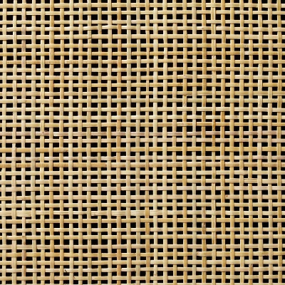 - Rattan-like woven doors offer a breezy look