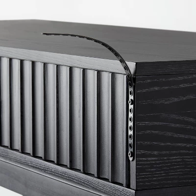With the Thousand Oaks Wood Scalloped Desk from Threshold™ designed with Studio McGee, you can style a beautiful look in your home while also creating a perfect space to get work done, enjoy a good read or practice your artistic hobbies. This stylish scalloped desk boasts stunning mid-century modern inspired details across the back and on the two drawers in front. The wood frame and wood composite top feature a natural finish for a look that pairs easily with many color palettes, making this desk an easy choice for your home office, living room or even a roomy hallway or foyer.